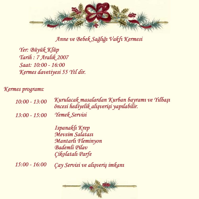 Kermes davetiyemizi vakfımızdan almayı unutmayınız..